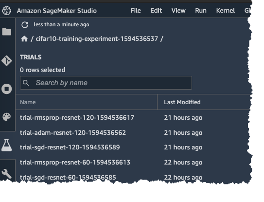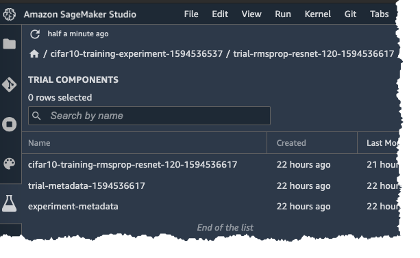 In Amazon SageMaker Studio, you can also view the Experiment Trial on the Experiment pane on the left.