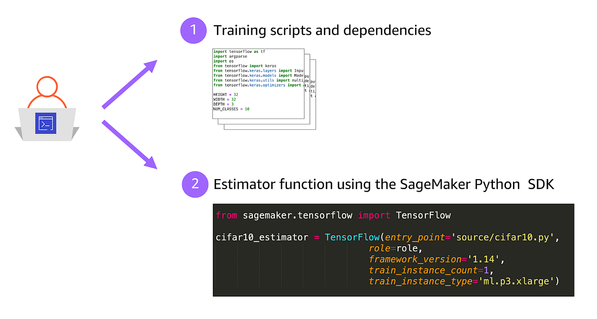 - Writing your training scripts in TensorFlow, PyTorch, MXNet or other supported framework.
