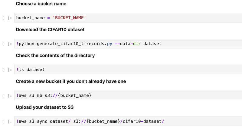 Run through upload_dataset_s3.ipynb to upload your training dataset to Amazon