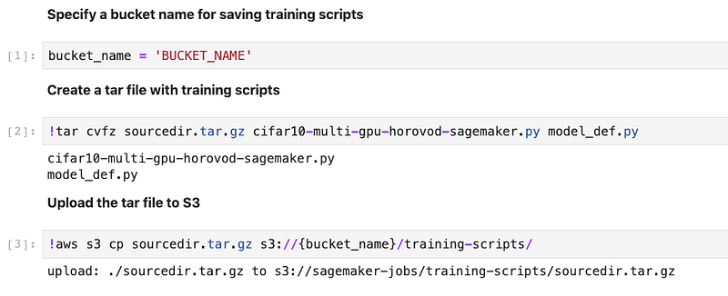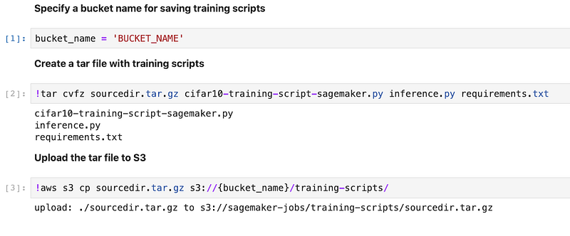 Run through upload_source_to_s3.ipynb to create a tar file with the training scripts and upload it to the specified Amazon S3 bucket.