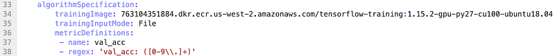 The only change you need to make is the trainingImage section where you’ll need to provide the location in your ECR registry where you pushed your custom container to.