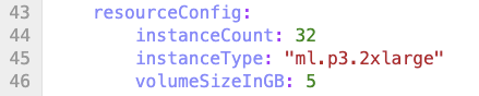 Under resource config specify how many instances or nodes you want to run this multi-node training on. The above config file specifies that it’ll run distributed training on 32 GPUs.