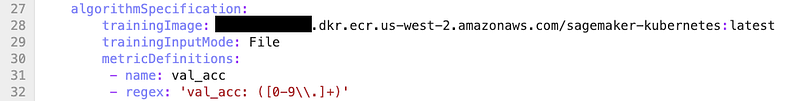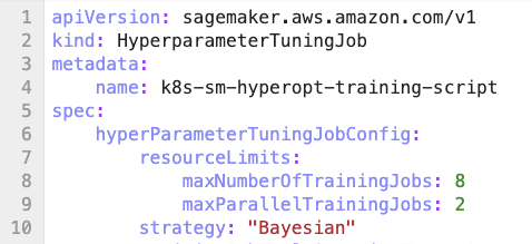 Open k8s-sm-hyperopt-training-script.yaml config file in your favorite text editor to take a closer look.