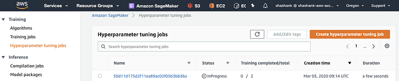 Navigate to AWS Console > Amazon SageMaker > Hyperparameter tuning jobs