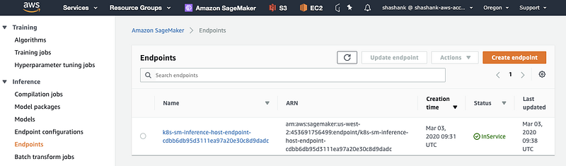 You should be able to see an Amazon SageMaker endpoint inservice and ready to accept requests.