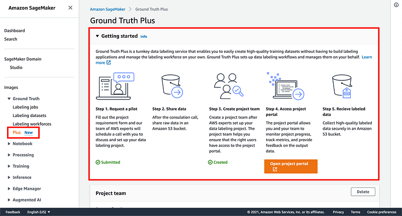 Amazon SageMaker Ground Truth Plus a data labeling service that that uses an AWS-managed workforce to deliver high-quality annotations without the need for you to build labeling applications and manage a labeling workforce. Initiating an Amazon SageMaker Ground Truth Plus project puts you in touch with AWS teams who’ll work with you to understand your use case, label volume, and timeline requirements. On project approval, your datasets will be labeled by a highly-trained AWS-managed workforce using already available SageMaker Ground Truth features. This means you don’t have to engage multiple labeling vendors or build a labeling workforce in-house, you can use Ground Truth Plus service only when you need data to be labeled, freeing the time of your data scientists and ML experts allowing them to focus on model development and deployment.