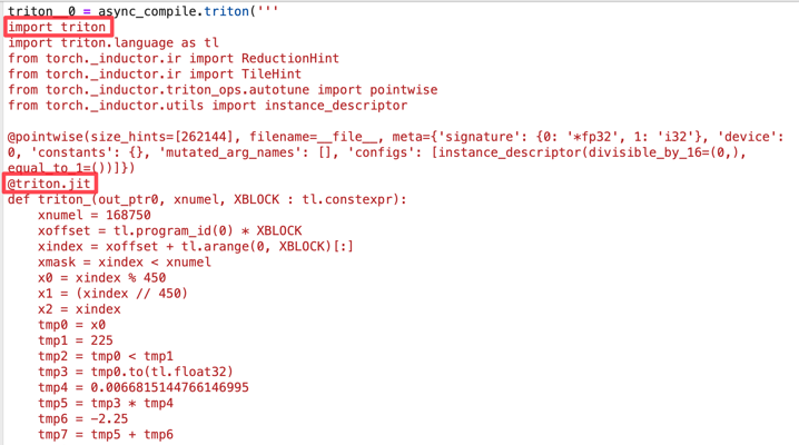 I’ve discussed this in detail in my PyTorch 2.0 blog post, but here is a screenshot of what the automatically generated fused kernels for C++ for CPU and OpenAI Triton for GPU look like for Mandelbrot function