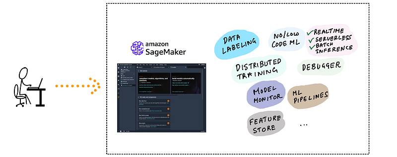 Amazon SageMaker is a fully-managed service part of an AWS account that includes choice of IDEs, low-code & no-code UI, data labeling and processing, wide selection CPUs, GPUs, and storage options for training, inference and scaling, end-to-end automation using MLOps practices and much more. You pay as you go, just like any other AWS service.