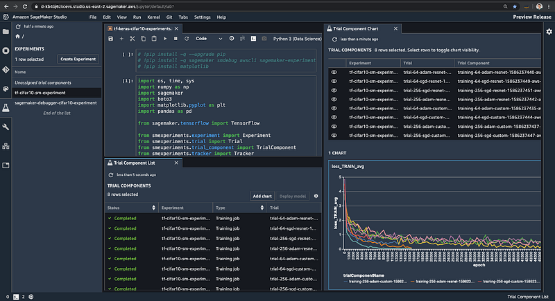 - Amazon SageMaker Studio: Amazon SageMaker Studio Notebooks, like the free Studio Lab and Notebook Instances offer a hosted JupyterLab services, and the difference is that you can switch CPU and GPU backends dynamically during use. If you’re running your notebook with a CPU-only backend, you can switch to a GPU backend with a couple of clicks. In addition it offers a host of point-and-click enhancements over standard JupyterLab for experiment management, AutoML, model deployment, pipeline management and more.