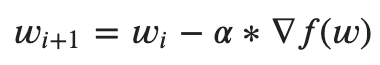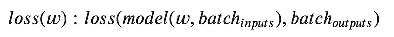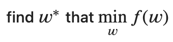 In machine learning f(w) is the loss function parametrized by weights. f(w) can be more clearly represented as some measure of error between the training labels and the model’s prediction labels based on the training data: