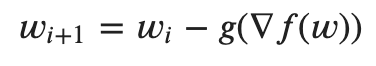 Where the function g(.) depends on the optimizer (e.g. sgd, sgdm, rmsprop, adam etc.).