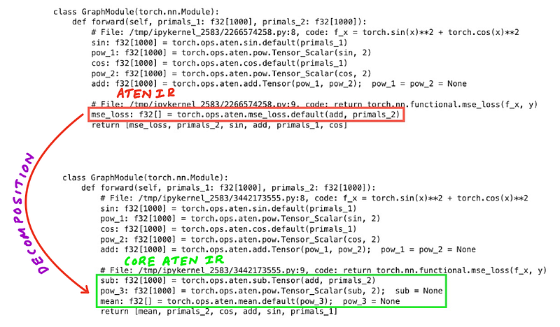 While we don’t need to further decompose our function into Core Aten IR and Prims IR I’ll demonstrate how below.