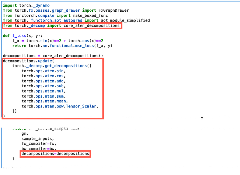You can update the AOTAutograd function to pass in a dictionary of decompositions that can lower the Aten IR into Core Aten IR and Prims IR. I’ll only share the relevant code snippet and output here since you can find the full notebook on GitHub. By default operators are not decomposed into Core Aten IR or Prims IR, but you can pass a dictionary of decompositions.
