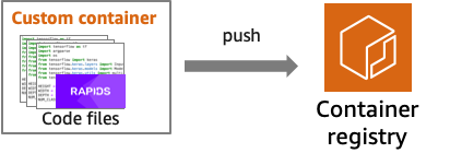 When running a large-scale training job either for distributed training or for independent experiments, you will need to make sure that datasets and training scripts are all replicated at each instance in your cluster. Thankfully, the more painful of the two — moving datasets — is taken care of by Amazon SageMaker. As for the training code, you already have a Docker container ready, you simply need to push it to a container registry, and Amazon SageMaker will then pull it into each of the training compute instances in the cluster. Use the Amazon Elastic Container Registry (Amazon ECR) to store your Amazon SageMaker compatible RAPIDS container and make it available for Amazon SageMaker.